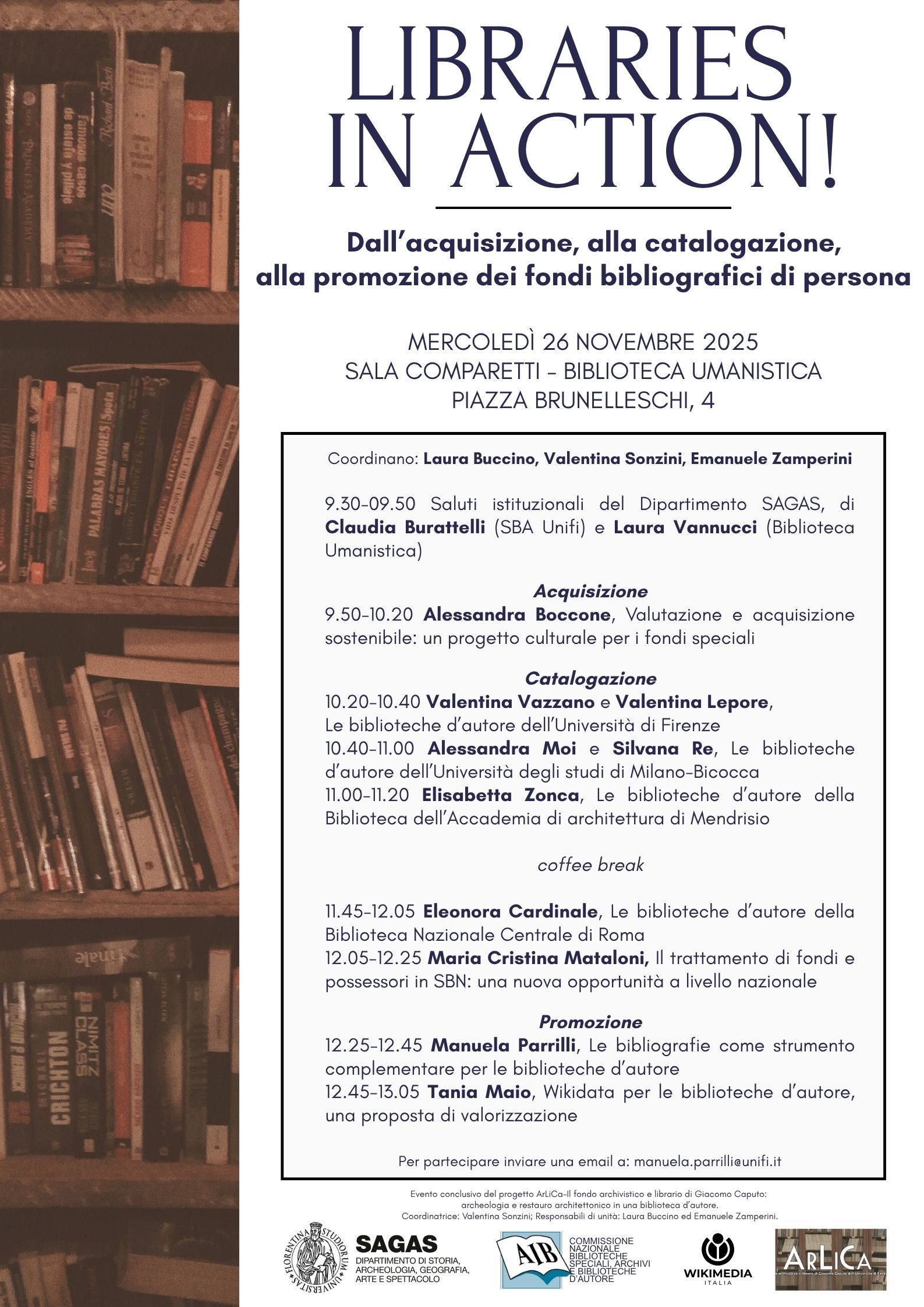 Per gli studenti del master del curriculum Biblioteconomico la partecipazione alla mattinata è obbligatoria e concorre al raggiungimento dei 14 CFU relativi ad Attività pratica e seminari.